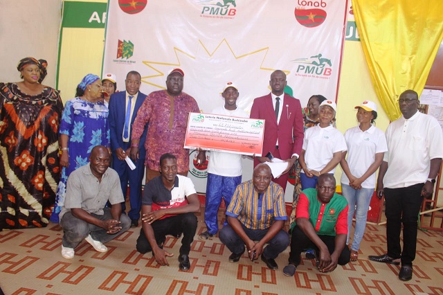 La Loterie nationale burkinabè a procédé le mercredi 5 avril 2023 à Bobo-Dioulasso, à la remise d’un gros lot de 68 752 000 F CFA à un heureux gagnant du 4+1 au Pari mutuel Urbain Burkinabè (PMU’B). Informaticien de formation, monsieur Abdourahamane Bamba, puisque c’est de lui qu’il s’agit, a gagné au 4+1 du 19 mars 2023 en misant la somme de 1 800 F CFA. C’est monsieur Eugène THIOMBIANO, Conseiller Technique, représentant le Directeur général de la LONAB qui lui a remis son chèque tout en lui souhaitant d’en faire un bon usage.